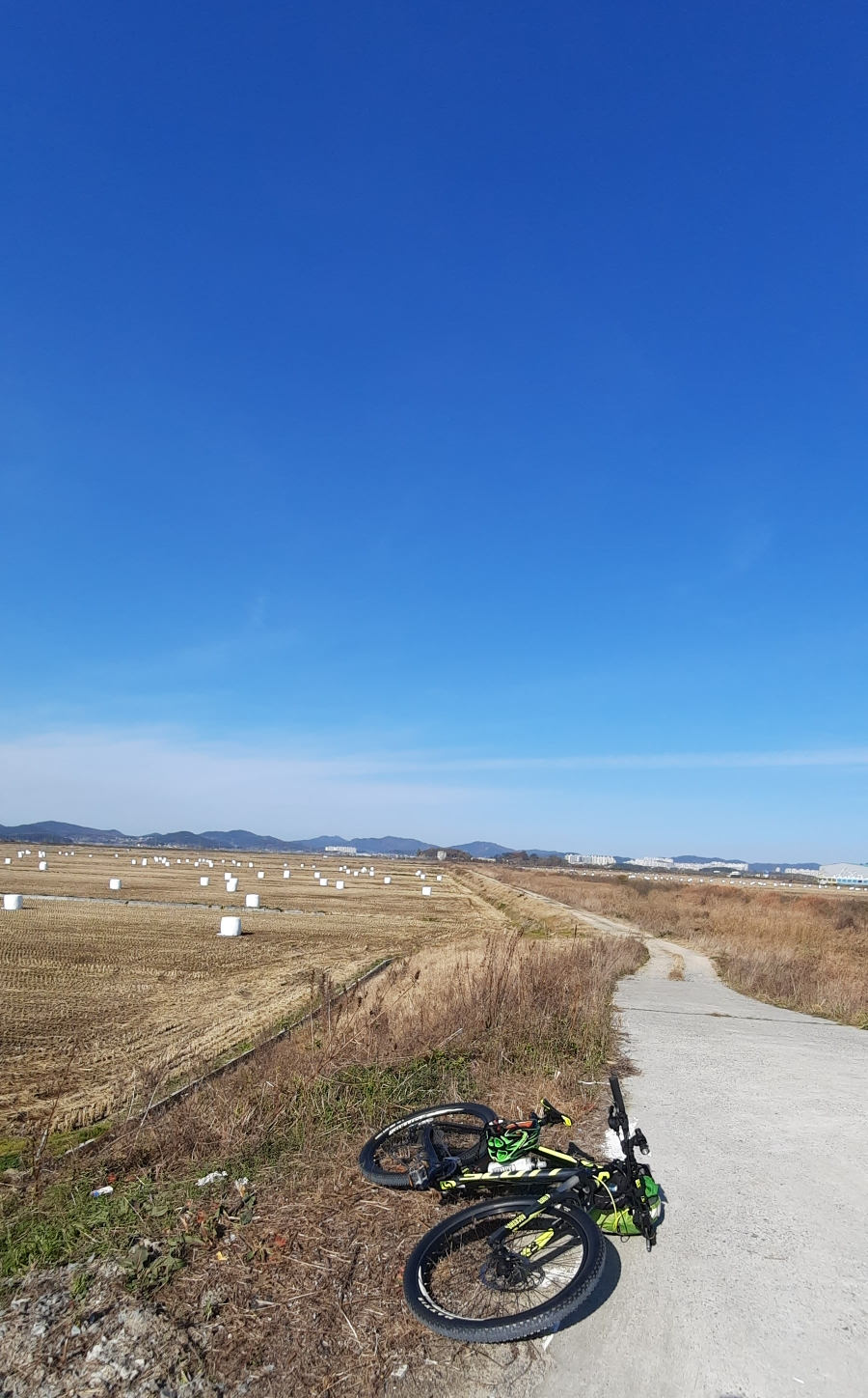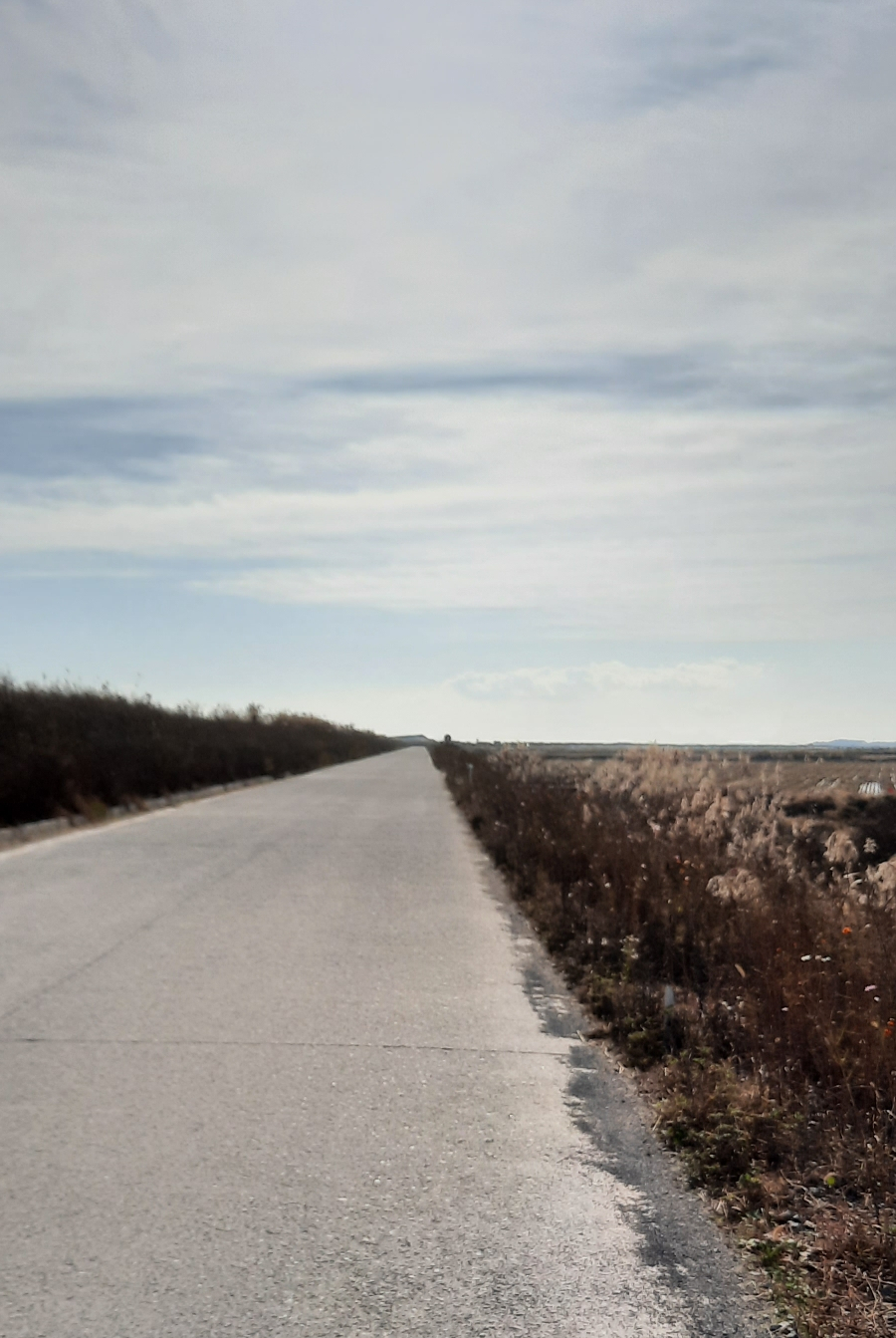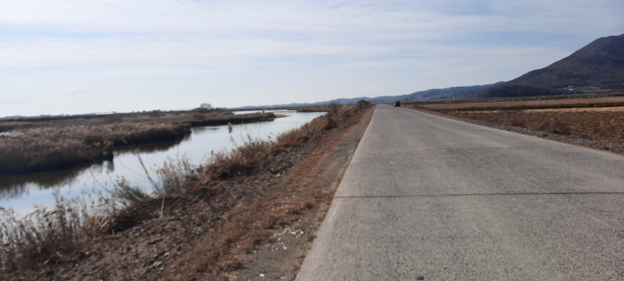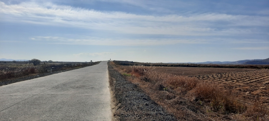 곧게 뻗은 농로를 달려봅니다.